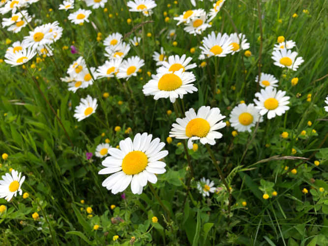 Von der Acker Glockenblume bis zum wilden Stiefmütterchen – hier findet ihr die aktuell in unserer eigens kreiierten Saatgutmischung enthaltenen Pflanzenarten: Gemeine Schafgarbe, Färberkamille, Acker Glockenblume, Rapunzel Glockenblume, Kornblume, Wiesen-Flockenblume, Skabiosen-Flockenblume, Rispen-Flockeblume, Wiesen-Pippau, Wilde Möhre, Echtes Labkraut, Echtes Johanniskraut, Rauer Löwenzahn, Magerwiesen-Margerite, Echte Kamille, Klatschmohn, Kleine Bibernelle, Spitzwegerich, Kleine Braunelle, Taubenkropf-Leimkraut, Wiesen-Bocksbart, Gamander Ehrenpreis, wildes Stiefmütterchen